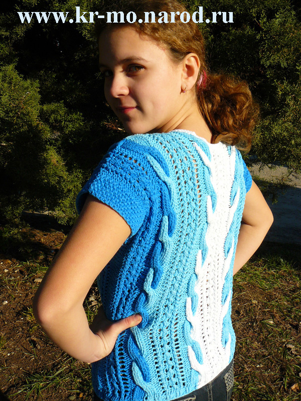 Модель №2 ТРЕХЦВЕТНЫЙ ПУЛОВЕР С КОСАМИ