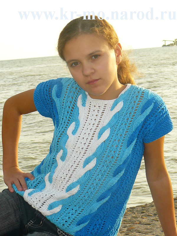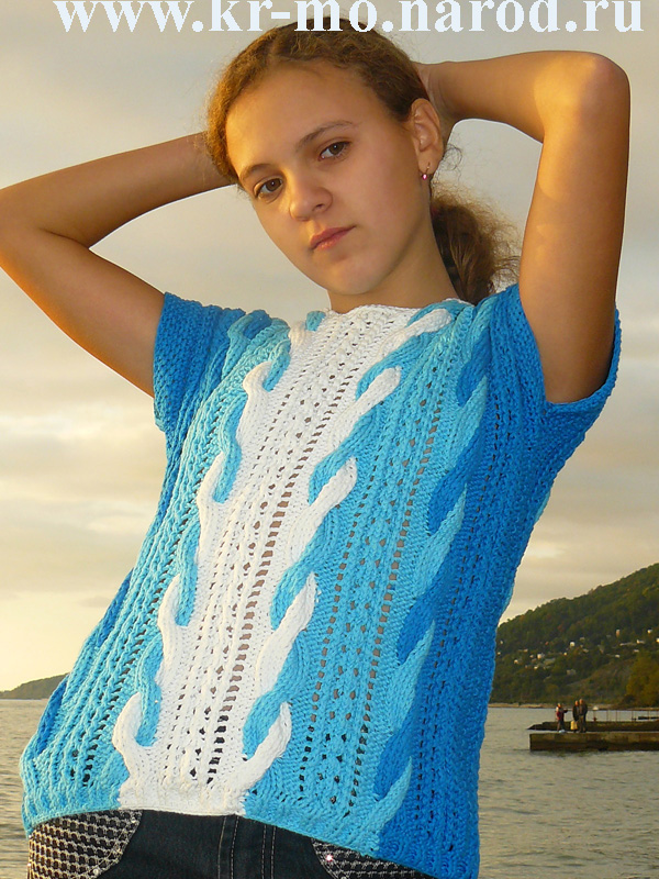 Модель №2 ТРЕХЦВЕТНЫЙ ПУЛОВЕР С КОСАМИ